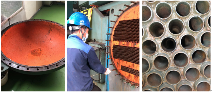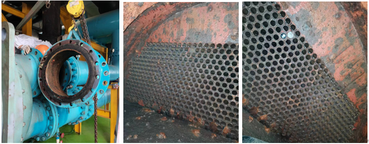 本次清洗僅做通炮清洗,無需化學(xué)清洗,主要是客戶要打開端蓋檢查冷凝器內(nèi)的腐蝕情況、銅管內(nèi)部的結(jié)垢情況。